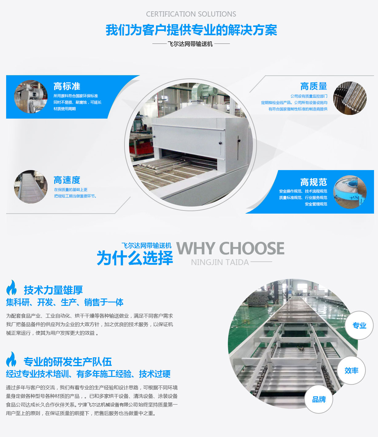 寧津飛爾達機械設備有限公司始建于1997年,位于山東省寧津縣經(jīng)濟開發(fā)區(qū)。本公司以生產(chǎn)制造金屬類網(wǎng)帶、鏈板、鏈條為主導產(chǎn)品。 建廠近20年,已和多家烘干設備、清洗設備、涂裝設備、食品公司、工業(yè)自動化達成長久合作伙伴關系。在保質量、保工期的基礎上更把售后當做重要環(huán)節(jié)。 本廠配件系列有:輸送網(wǎng)帶、輸送鏈板、輸送鏈條、乙型網(wǎng)帶、烘干網(wǎng)帶、清洗網(wǎng)帶、不銹鋼鏈板、沖孔鏈板、排屑鏈板。 設備系列:網(wǎng)帶輸送機、鏈板輸送機、烘干輸送機、清洗輸送機、轉彎輸送機。